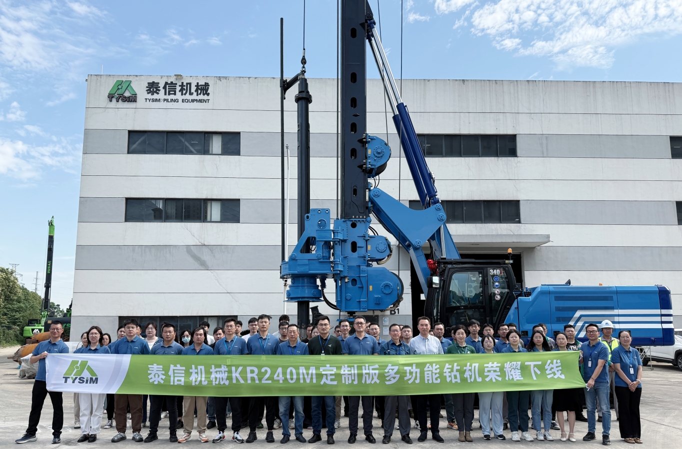 2025年6月5日,江蘇泰信機(jī)械股份有限公司(以下簡稱“泰信機(jī)械”)在無錫本部舉行定制款 KR240M卡特彼勒底盤多功能旋挖鉆機(jī)下線及交付儀式。KR240M作為泰信機(jī)械出口至迪拜的首臺(tái)設(shè)備,正式開啟其深耕中東市場的戰(zhàn)略布局。泰信機(jī)械董事長辛鵬、副董事長潘俊吉、常務(wù)副總經(jīng)理兼研發(fā)部部長相振松等高層及部分員工悉數(shù)出席,與專程前來的迪拜客戶代表—— 陸英匯國際機(jī)械(無錫)有限公司(以下簡稱“APIE”)總經(jīng)理姚炯共同見證這一里程碑時(shí)刻。