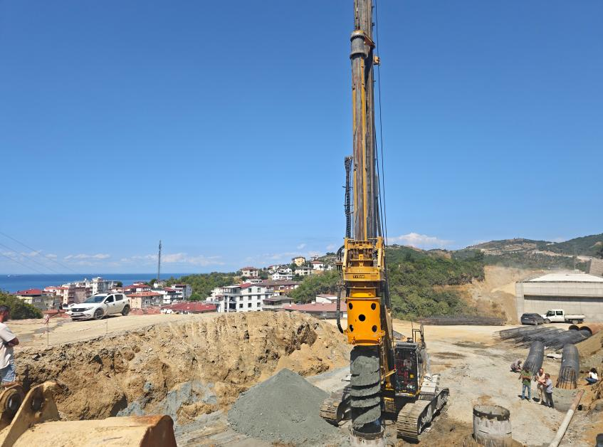 亞洛瓦項(xiàng)目施工區(qū)域?qū)儆诘湫偷幕旌系鼗?,地質(zhì)條件復(fù)雜,部分鉆孔過程中出現(xiàn)大量涌水現(xiàn)象,對(duì)施工設(shè)備提出嚴(yán)苛考驗(yàn)。泰信機(jī)械KR360M旋挖鉆機(jī)憑借卡特彼勒底盤的卓越穩(wěn)定性和自主研發(fā)的智能電液系統(tǒng)精準(zhǔn)應(yīng)對(duì)復(fù)雜地層。針對(duì)涌水問題,設(shè)備通過模塊化設(shè)計(jì)的鋼護(hù)筒護(hù)壁技術(shù),配合改良清渣鉆頭,有效防止孔壁坍塌,確保施工安全進(jìn)行。相比傳統(tǒng)設(shè)備,其施工效率提升近30%,更好的適配土耳其復(fù)雜地質(zhì)環(huán)境的需求。